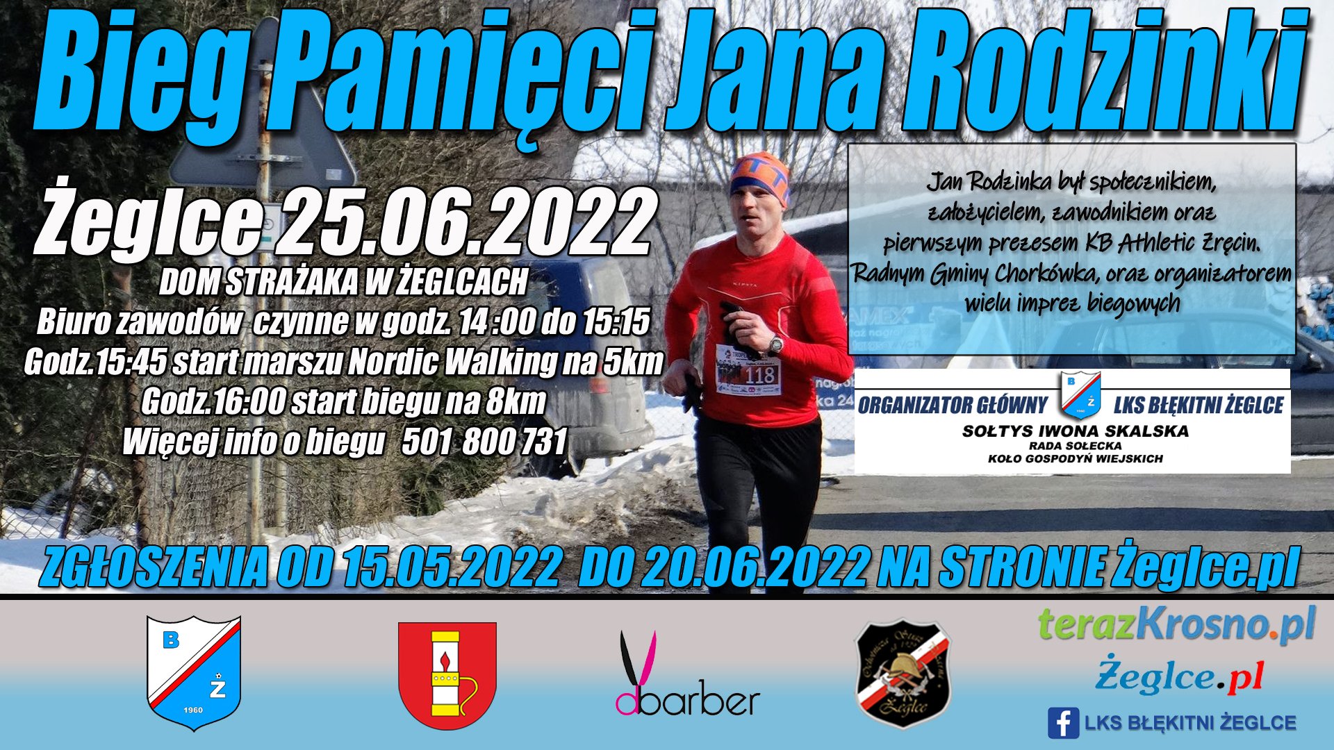 Z przykrością informujemy że Bieg Pamięci Jana Rodzinki z przyczyn nie zależnych od organizatora zostaje przeniesiony na inny termin.
